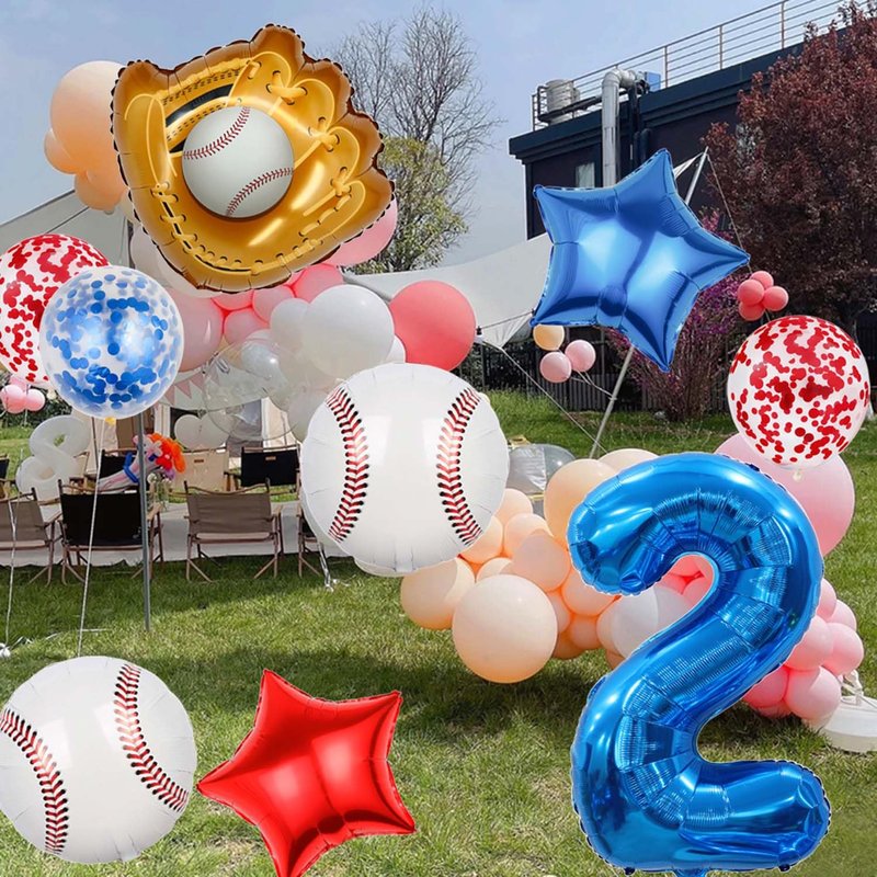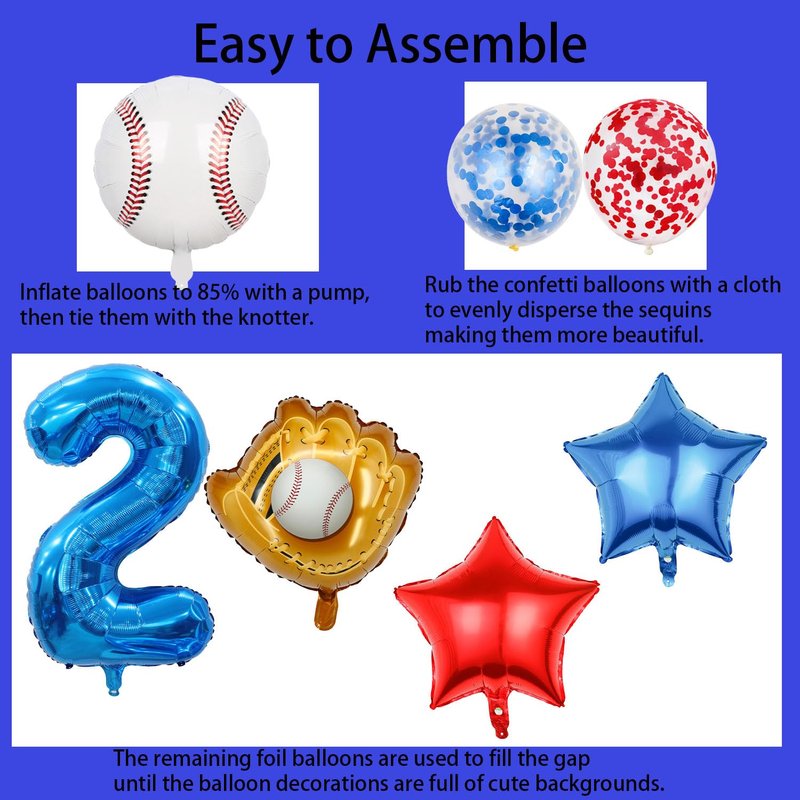 - 【Baseball Themed Decorations】:The baseball balloon set features a fun and very amazing design that is perfect for those looking to add a touch of excitement to their baseball party. The large 2nd foil balloon and baseball balloon scheme create a sporting atmosphere, while the red and blue latex confetti balloons and cute red and blue star balloons add a touch of fun. Whether you're hosting a boy's birthday party or a baseball boy's shower is sure to impress your guests.