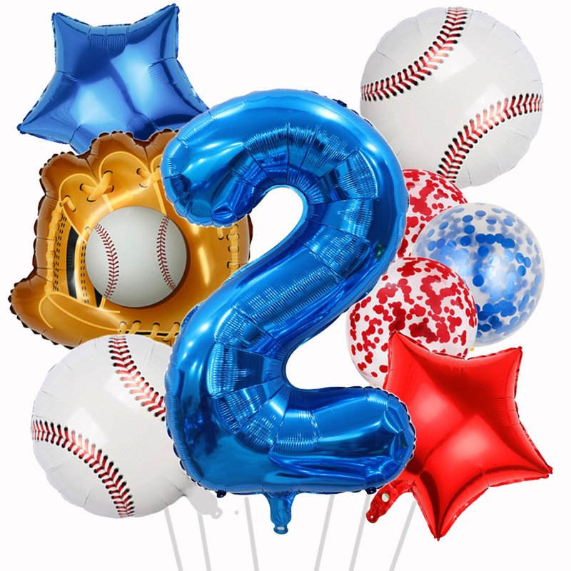 - 【What You Will Get】:Baseball Balloon Set - This valuable baseball party decoration kit includes 2pcs 18in baseball balloons,18in red star balloon 1pcs, 18in blue star balloon 1pcs, 2pcs 12in red confetti balloons,1pcs 12in blue confetti latex balloon, 1pcs 21in baseball glove balloon, 1pcs 32in blue number 2 balloon. Each package includes 9 balloons with 7 styles of patterns in total.