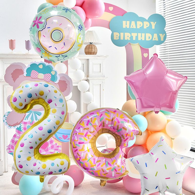 - 【 Applicable occasions 】: These donut birthday decorations are perfect for a variety of events, including a boy's girl's birthday party girl's shower, donut theme party, winter theme party, sweet party, Wedding party, summer party, and sweet birthday decorations. creates a warm and playful look. And these balloons can be adapted to suit your needs and create a beautiful sweet and dreamlike atmosphere that will transport your guests to the birthday party and the dreamlike donut world.