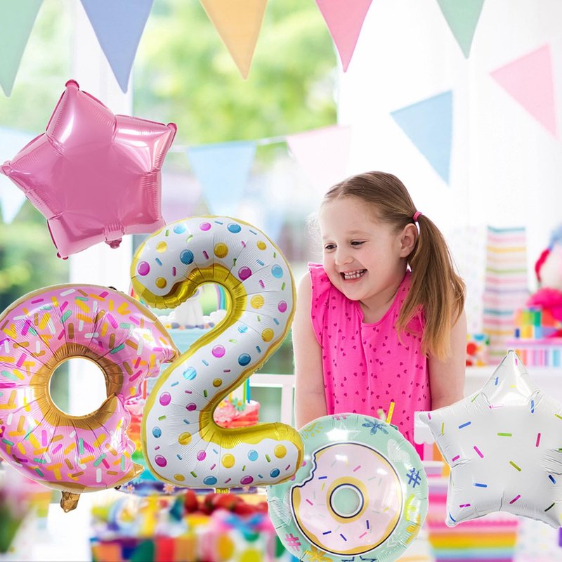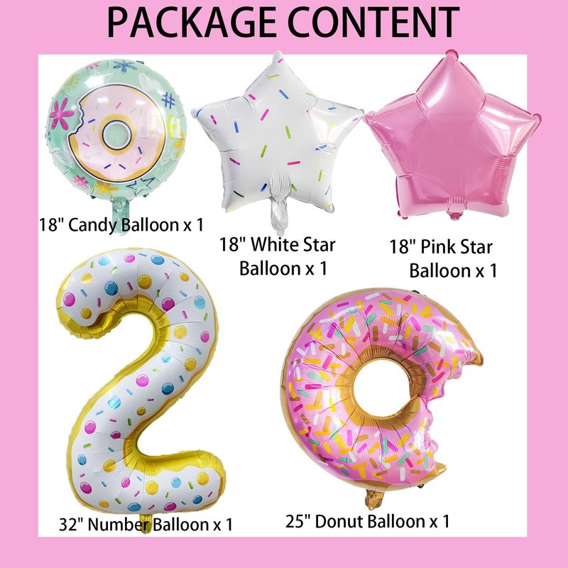 - 【What You Will Get】:Sweet One Birthday Party Decorations - This valuable Donut birthday party decorations include 1pcs 25in Donut balloon,1pcs 18" candy foil balloon, 1pcs 18in pink star balloons,1pcs 18in white star balloons, 1pcs 32in number 2 balloon. Each package includes 5 balloons with 5 styles of patterns in total.