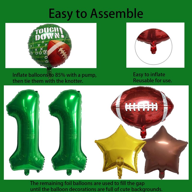 - 【Football Themed Decorations】:The football balloon arch features a fun and amazing design that is perfect for those looking to add a touch of excitement to their football party. The giant 11th foil balloon and rugby balloon scheme create a sporting atmosphere, while the cute brown and gold star balloons add a touch of fun. Whether you're hosting a boy's birthday party or a football boy's shower is sure to impress your guests.