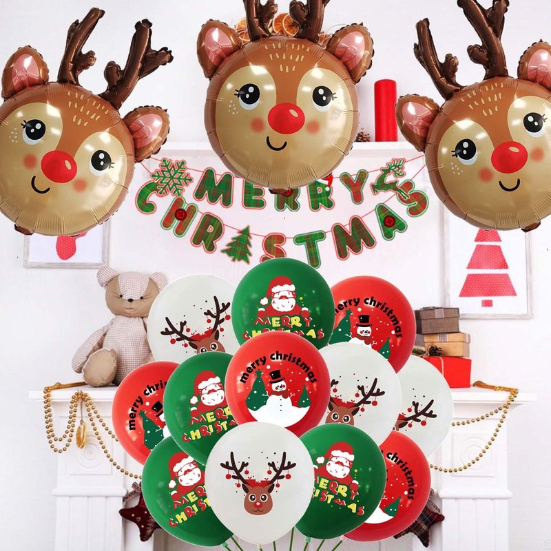- 【 Christmas-Themed Decorations】:The Christmas balloon set features a fun and very amazing design that is perfect for those looking to add a touch of excitement to their Christmas party. These Reindeer foil balloons scheme create a warm atmosphere, while these red green, and white Christmas latex balloons add a touch of fun. Whether you're hosting a Christmas party, Reindeer-themed parties are sure to impress your guests.