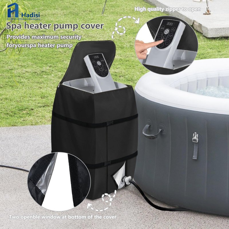 - 【Durable spa heater pump cover】-Our spa heater pump uint cover is made of 600D durable oxford cloth with waterproof coating,which is waterproof,UV-resistant,tear-resistant,etc.It can prevent your spa heating pump from water,UV,dirt,moisture,etc,make it always look like new,and extend the service life of the machine.
