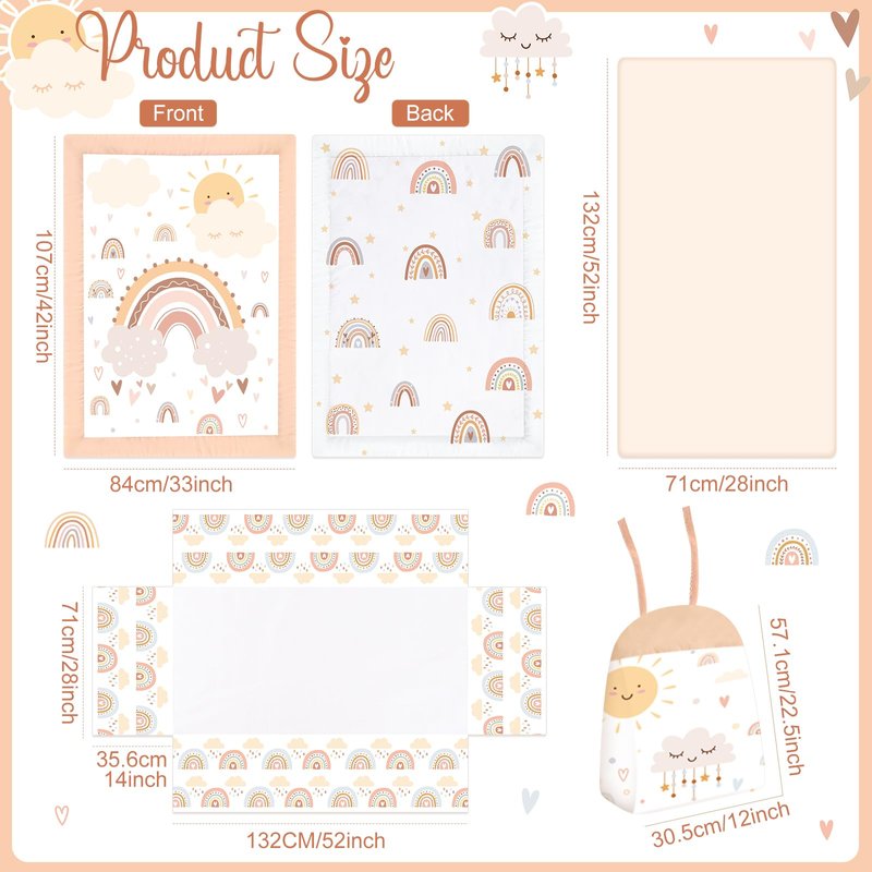 - Quality Polyester: our boho rainbow crib bedding set is mainly made of polyester, no chemicals, machine washable, safe and comfortable, soft and breathable, and do not worry about harming your baby's delicate skin