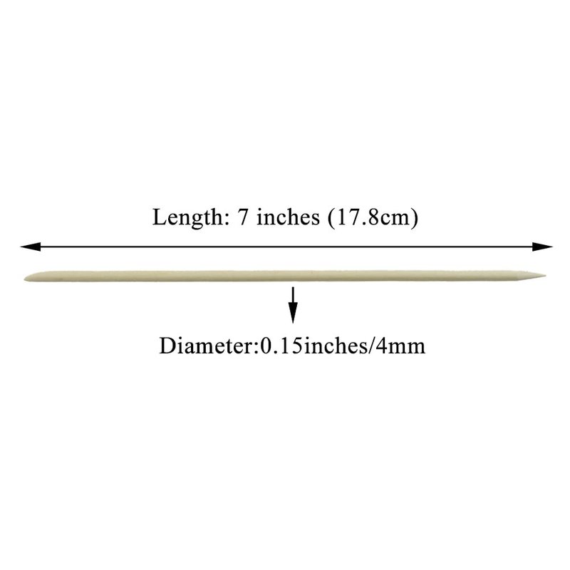 Size:Length: With a length of 7 inches (17.8cm) and a diameter of 0.15 inches (4mm), our Dual-Ended Cuticle Pusher Stick is the perfect size for efficient and effective use.