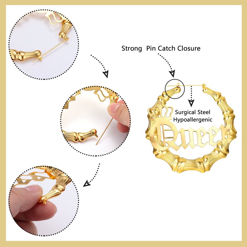 - 🥂Size🥂 Queen pendant necklace length: 46cm+6cm/17.7''+1.96'' extension chain. Bamboo Hoop Earring: 7.6*7cm(3" x 2.75"). T bracelet length is 7.87''+1.96''. The ear hook part of the earring can be adjusted by itself. If you feel that the part of the ear pin is not suitable, you can pinch the ear buckle part with your hand or a tool.