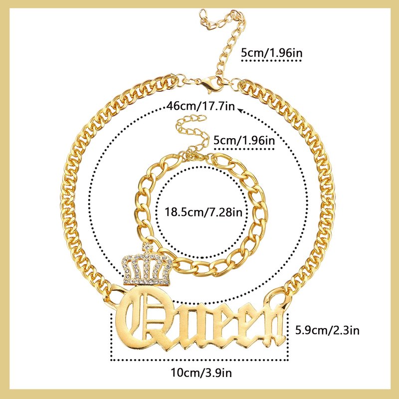 - 💕MATERIAL💕 The Queen pendant necklace and hip-hop earrings are made of high-quality metal, free of nickel and lead. Brilliant and durable for long-time use, easy to put on and get off; The chain bracelet keeping shiny by highly polished and is finished with sturdy lobster clasps.
