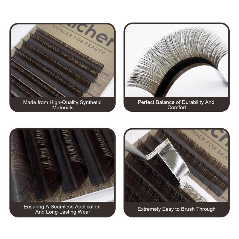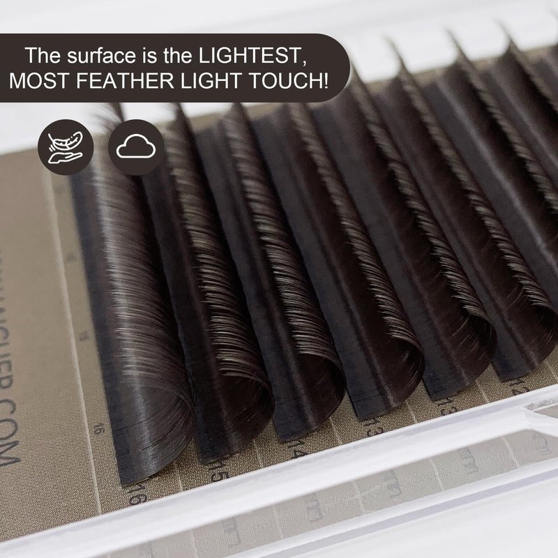 - Brown lash extensions tray: Velvety soft volume lashes in Dark, Light, Medium and Caramel brown colors, 0.03 0.05 0.07 thickness, C&D curl, 8-16mm mixed length.