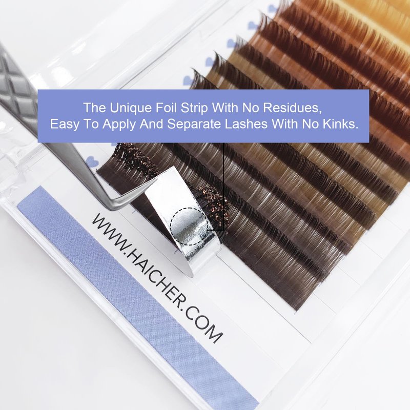 HAICHER Brown Lash Extensions 05 CC Curl 12mm Single, Colored Lash Trays for Eyelash Extension