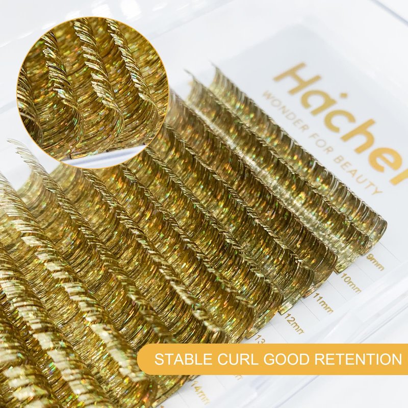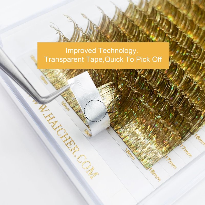 HAICHER Colored Lash Extensions CC Curl 9-18mm Mixed Lash Trays, Holographic Lash Tinsel for Eyelash Extension (Gold, Volume)