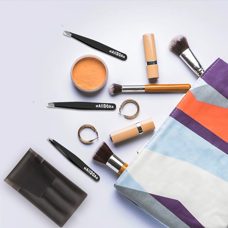 HAIIDOAK Tweezers Set, Professional Stainless Steel Tweezers for Eyebrows, Great Precision for Facial Hair, Splinter and Ingrown Hair Removal (3 Count / 3.8inch, Black)