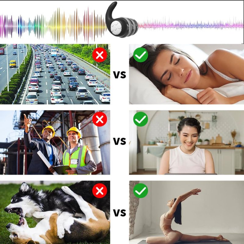 - WIDE APPLICATION:Noise canceling earplugs are perfect for swimming, surfing, diving and other water activities, protect your hearing from high damaging decibel levels, also can bring you a quiet environment, avoid depression and tinnitus , is the perfect companion for sleeping, snoring, focusing, traveling, relaxing