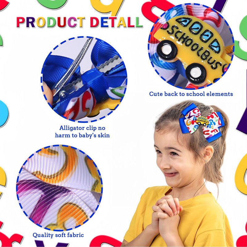 HAIMITI Back to School Hair Bows School Bus Hair Clips Letter Blue Hair Bow Clip Cute Cartoon Hairpins for Little Toddler Girls Students Kindergarten First Day of School Hair Accessories 2pcs