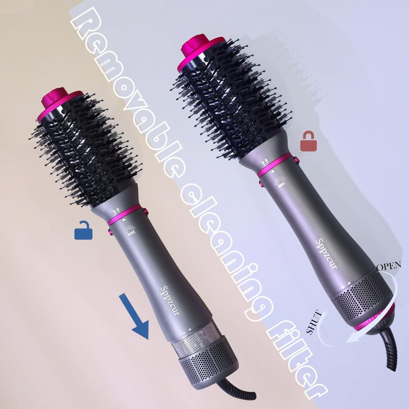 - 【Humanized Design】: 360°swivel cord for more convenient operation;Dual filters with removable outer mesh for easy cleaning,dual protection to prevents hair from being sucked in,extends the service life and effectiveness of the hot air brush.