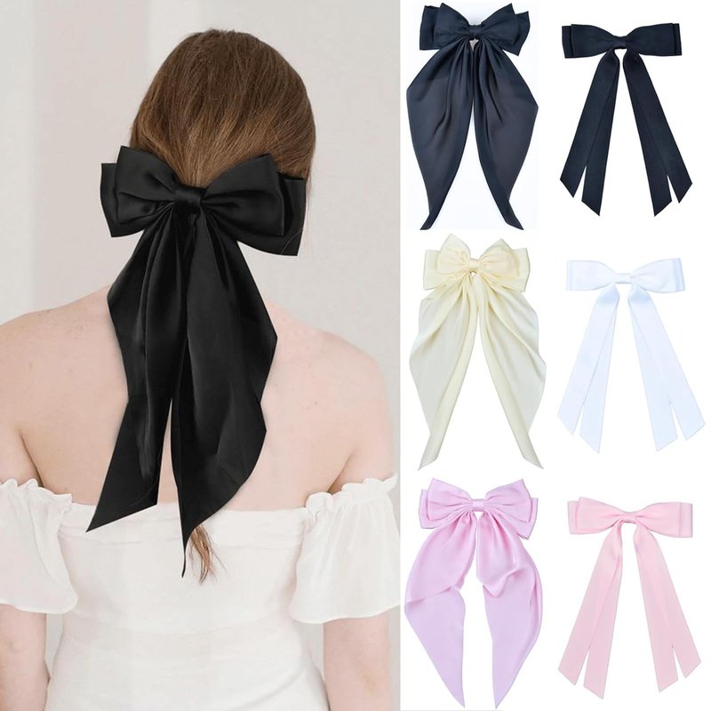Hair Bows for Women: 6 Pcs Hair bow, 3 Pcs Big Hair Bows Long-tail & 3 Pcs Hair Ribbon Bow Hair Clips Coquette Bows for Girls Cute Silky Satin Hair