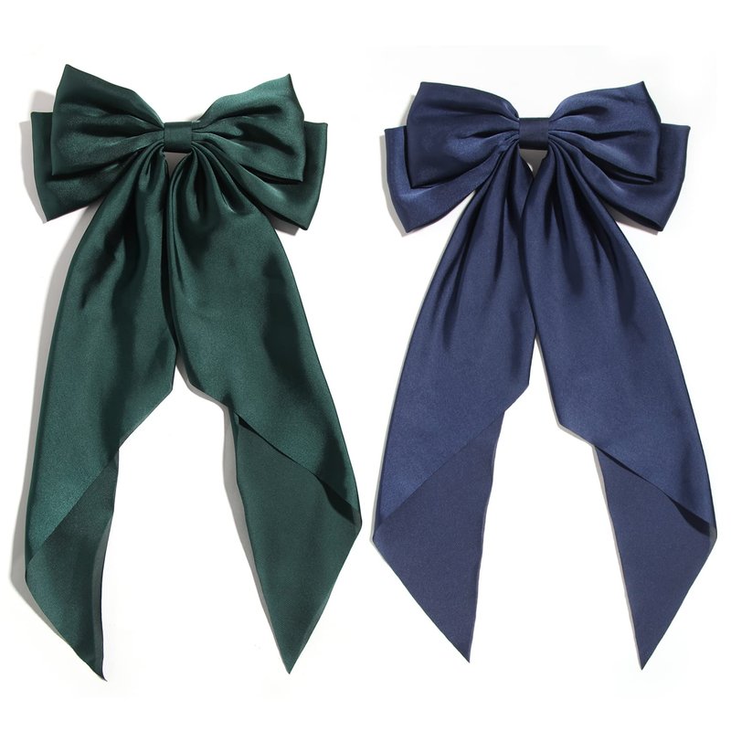 Hair Bows for Women Girls, Green Hair Bows Navy Hair Bows Barrettes Clips for Women Oversized Layered Bows Hair Clip Long Tail Hairpin Hair Barrettes 90's Accessories 2pcs