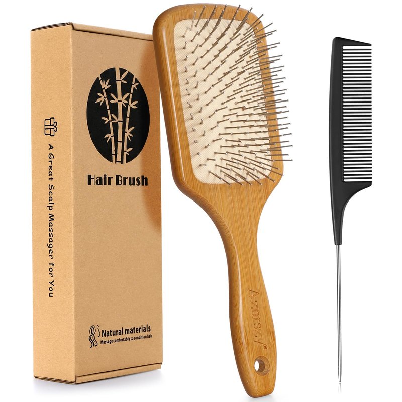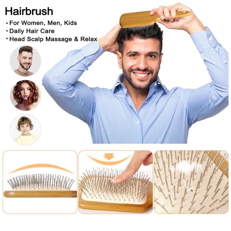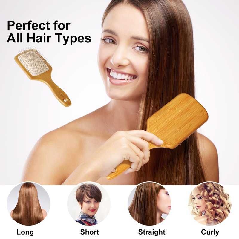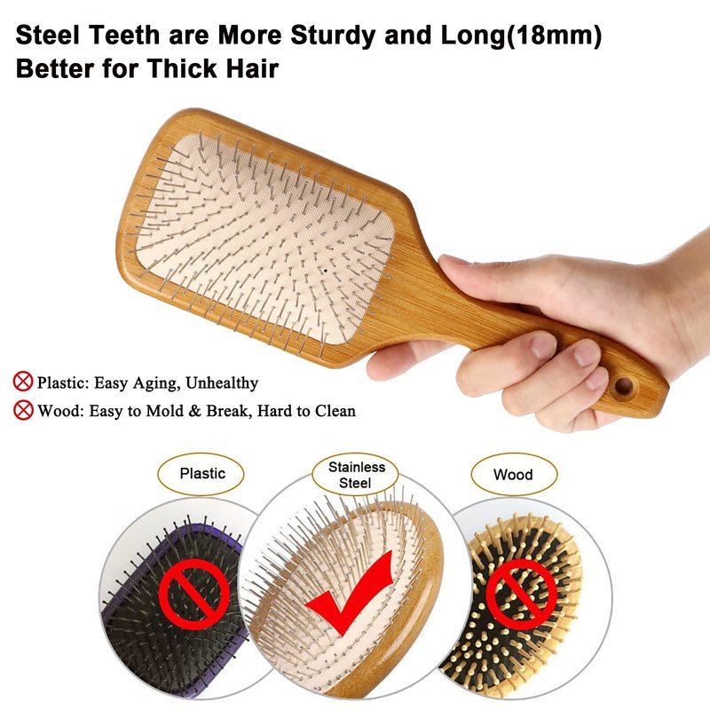 - Healthy Material: Made of quality bamboo and stainless steel, make the hair brush natural look and durable. It provides an effective brushing experience for all hair types, especially for thick and curly hair.