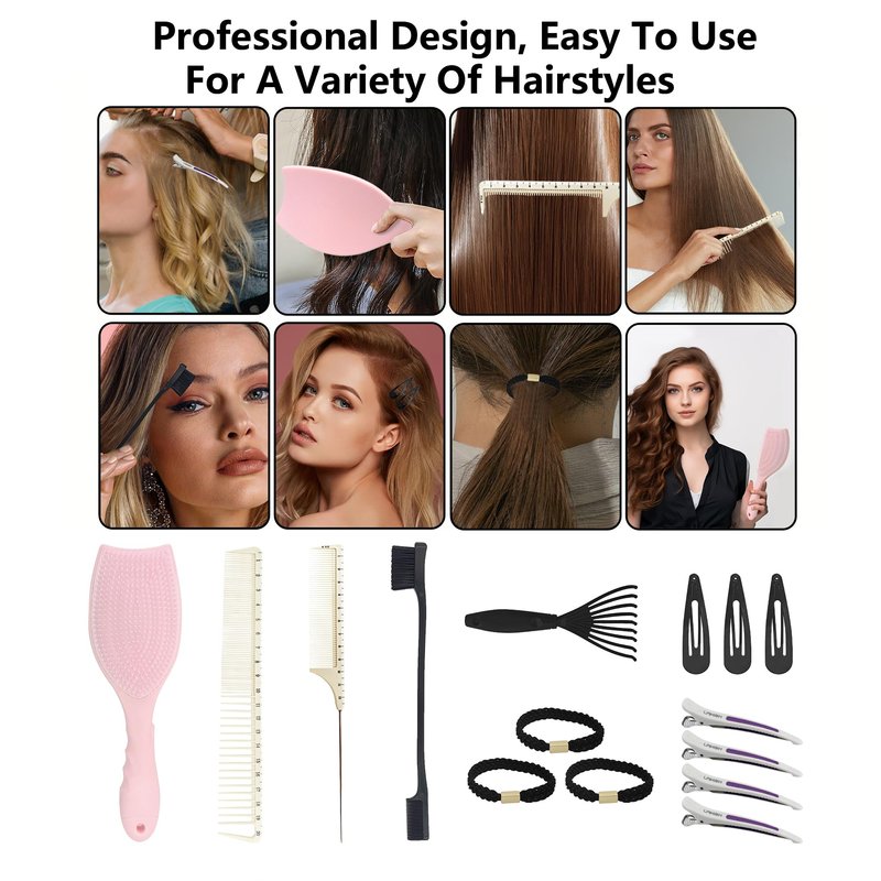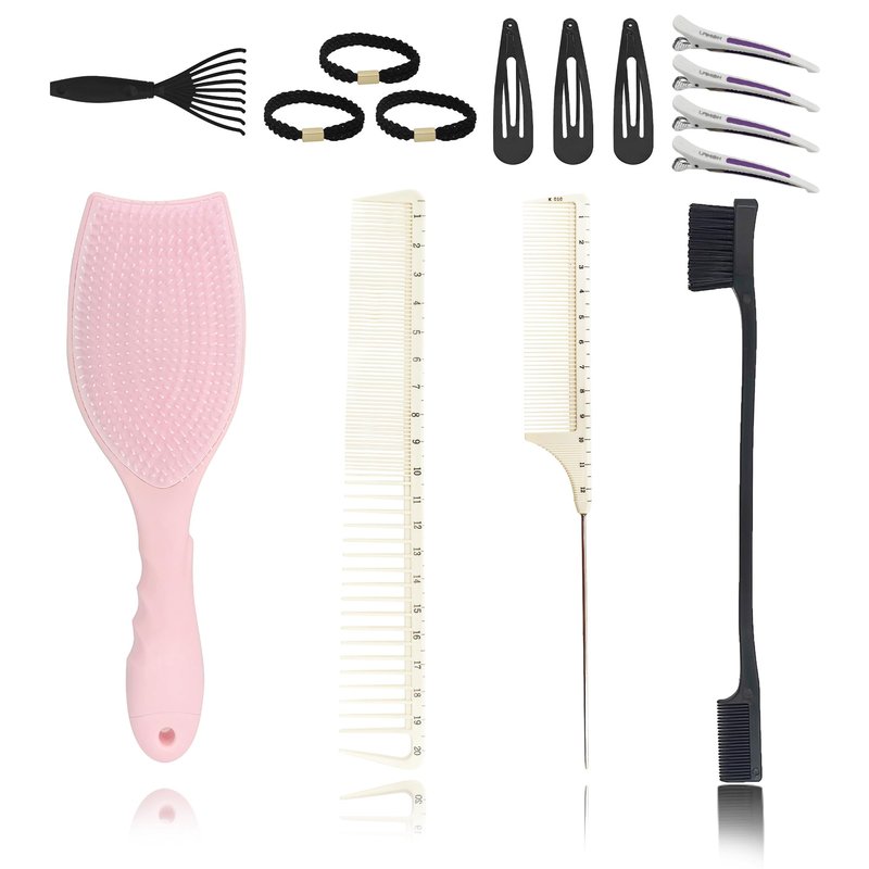 - Complete Hair Care Set: This kit includes a detangling brush, a wide-tooth combs, a edge brush a tail comb, 3 hair clips, and 3 hair ties for all your styling needs.