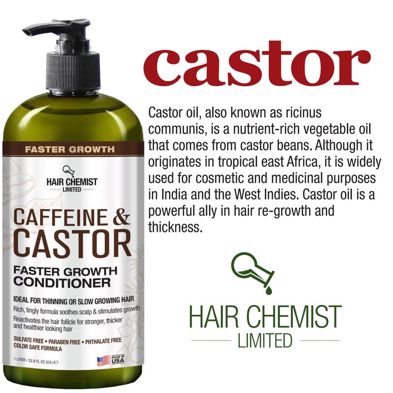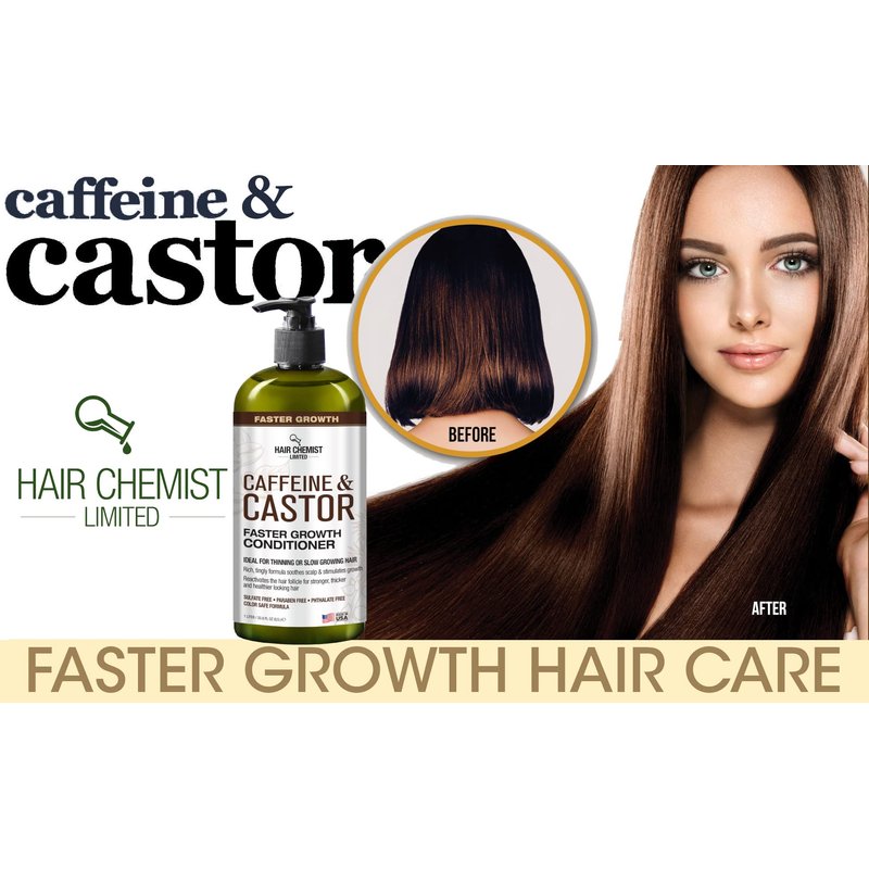 QUICK HAIR GROWTH - Conditioner infused with Caffeine and Castor Oil to help fortify hair and encourage faster healthier hair growth. CAFFEINE OIL FOR HAIR GROWTH - Helps deeply condition while Strengthening and providing hydration to prevent breakage. SMOOTHS HAIR FOLLICLES - while leaving hair softer for a full, smoother finish. CAFFEINE & CASTOR CONDITIONER - Natural Formulation Caffeine and Castor Oil Conditioner that helps thicken, thin, lifeless hair. Easy Hair Chemist Packaging - 12 Ounce Pump Bottle - Made in USA