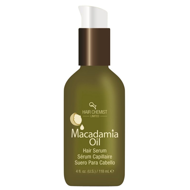 - Macadamia Oil Hair Serum heals, shines, and protects. This serum uses intense nourishment designed for tangled and frizzed hair. The serum makes hair ultra smooth, manageable and shiny with natural UV protection to help extend the life of color treatments.