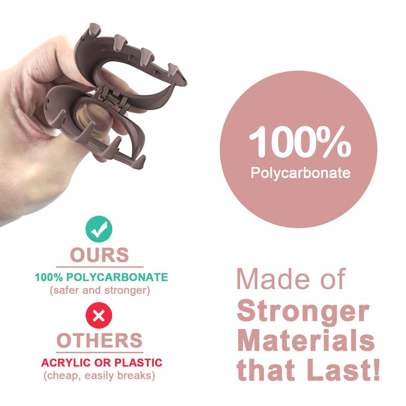 - ▶ SKIN SAFE MATERIAL - Made of high quality Polycarbonate with soft matte coating, which is twice as expensive as acrylic and much more sturdy, the medium hair clips are strong flexibility, durable, hard to break or fade out. They are BPA-free, which is good for your health and the environment.