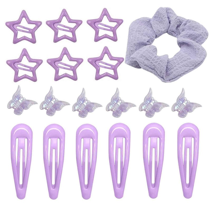 Hair Clips Barrettes Metal Star Hair Clip Snap Y2K Clips Accessories Mini Butterfly Pastel Hair Clips Elastic Hair Scrunchies Bands Set Cute Accessories for Girls Women Teens (New Purple)