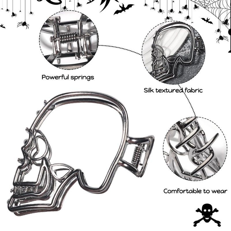 Hair Clips Skull Claw Clips Metal Black Claw Clips Skull Head Shape Design Hair Accessories for Women Girls Thick Thin Hair Cosplay Halloween Decorations 1PCS