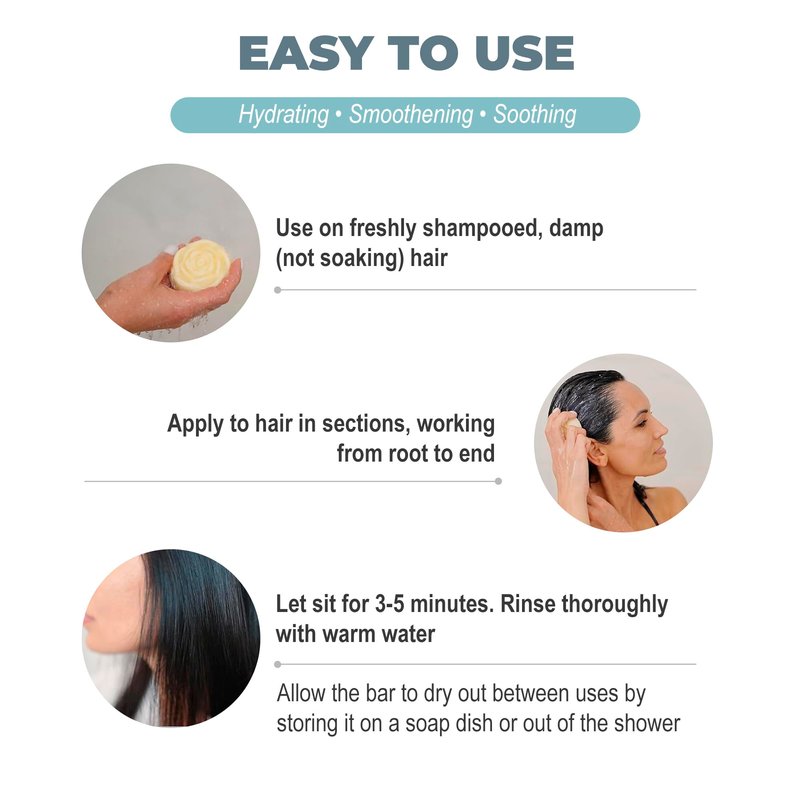- SOFTENING AND MOISTURIZING BAR: Nourishing Plant-Based Ingredients: Infused with a blend of enriching natural ingredients including shea butter, coconut oil, cocoa butter, jojoba oil, and argan oil, this conditioner bar provides deep nourishment and hydration to revitalize your hair.