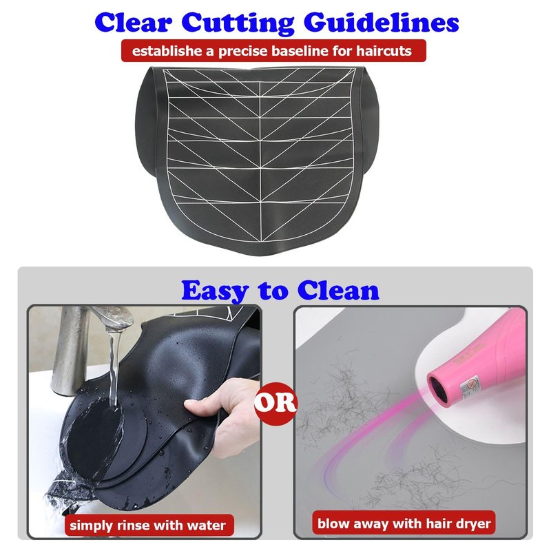 Hair Cutting Guide Collar for Hairstylists Hair Cutting Mat Neck Guard Silicone Waterproof Hair Dye Collar Hair Salon Equipment Our hair salon supplies can help to achieve precise and even haircuts at home or salon, suitable for different hair lengths, reducing mess and improving work efficiency. Silicone Material Made of premium quality silicone material which is waterproof, durable, flexible, comfortable to touch, and easy to clean. Weighted Front The weighted front keeps the hair cutting collar securely in place and prevents it from shifting, making for accurate hair coloring and cutting. With Guidelines The hair cutting guide tool has clear lines which make you feel more at ease to trim and cut hair. Suitable for both beginners and professionals.