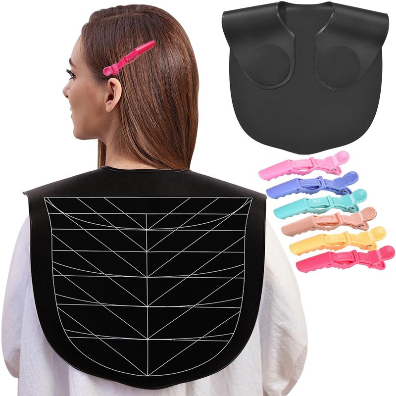 - PERFECT SIZE: This hair cut shoulder mat measures 21.5x16.5 inch, long enough to suitable for most adults, teenagers and children. Great tool for barber shop, hair salon or home DIY use, meets the needs of hairdresser professionals and beginners. PACKAGE: 1 x hair cut guide + 6 x alligator hair clips