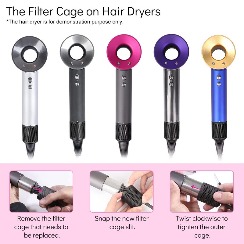 • [Function & Benefit] Hair dryer outer strainer is used to prevent dust, hair and debris into hair dryer. Over time, the filter cage is easily blocked or damaged by these garbage, if you do not replace the filter for a long time, it will affects the performance of the hair dryer, also will damage your hair dryer. Therefore, we recommend you to replace the hair dryer regularly.
