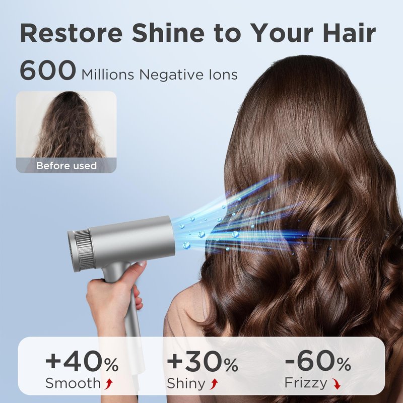 - Double Hair Care Technology: 600 Million Negative Ions help maintain moisture balance by sealing the cuticles, keeping your hair hydrated and preventing dryness. Besides, smart thermo-control auto adjusts temperature 100 times per second to prevent your hair from overheating damage. Visible +28% hair shine in 60 days