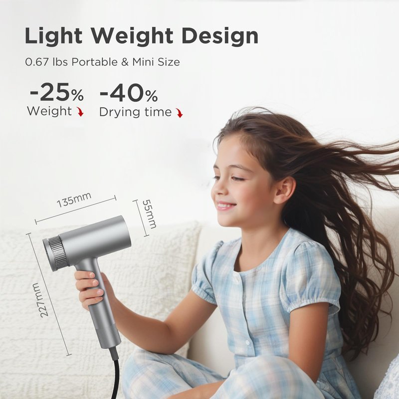 - Feather-Light Design: At just 0.67lb (304g), our hairdryer is -25% lighter than other high speed blow dryers and -40% than traditional ones. Comparable to holding two apples in your hand, Babonir ionic hair dryer is especially designed for those with arm strain or arthritis. Its portable size is ideal for travel, gyms and more
