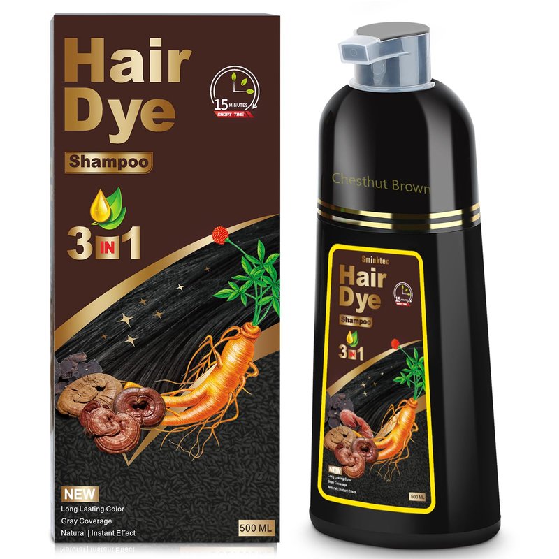Hair Dye Shampoo 3 in 1, Herbal Shampoo Hair Dye for Women Men, Grey Coverage Shampoo 500ml (Chestnut Brown)