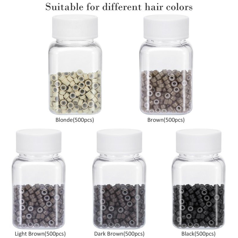 - Extension beads: The hair extension beads come with 5 different colors, namely black, brown, dark brown, light brown and blonde, each color has 500 pieces. They can provide you with a variety of options. In addition, the beads have very soft silicone liners that could holds your hair tightly, and it is easy to install without hurting your hair.