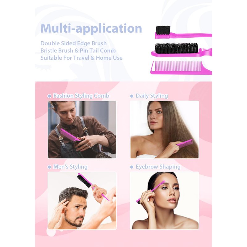 - 【Edge Brush for Styling at All Time】: Hair styling brush set for different use occasions, whether for daily life eliminates frizz, dressing up for work, outdoors or social events, you can create a fashionable and personalized hairstyle.