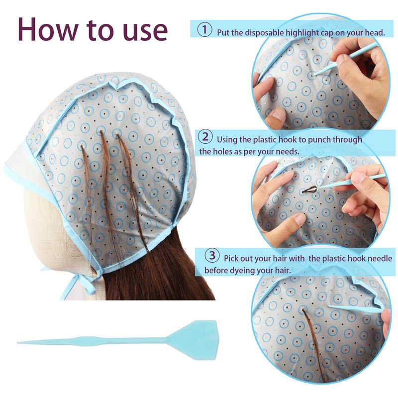 - Easy to Use: Just put on the cap, tie the attached strap around your neck, fit it firmly, then poke holes with a crochet hook and pick out the hair that needs to be highlighted according to your preference
