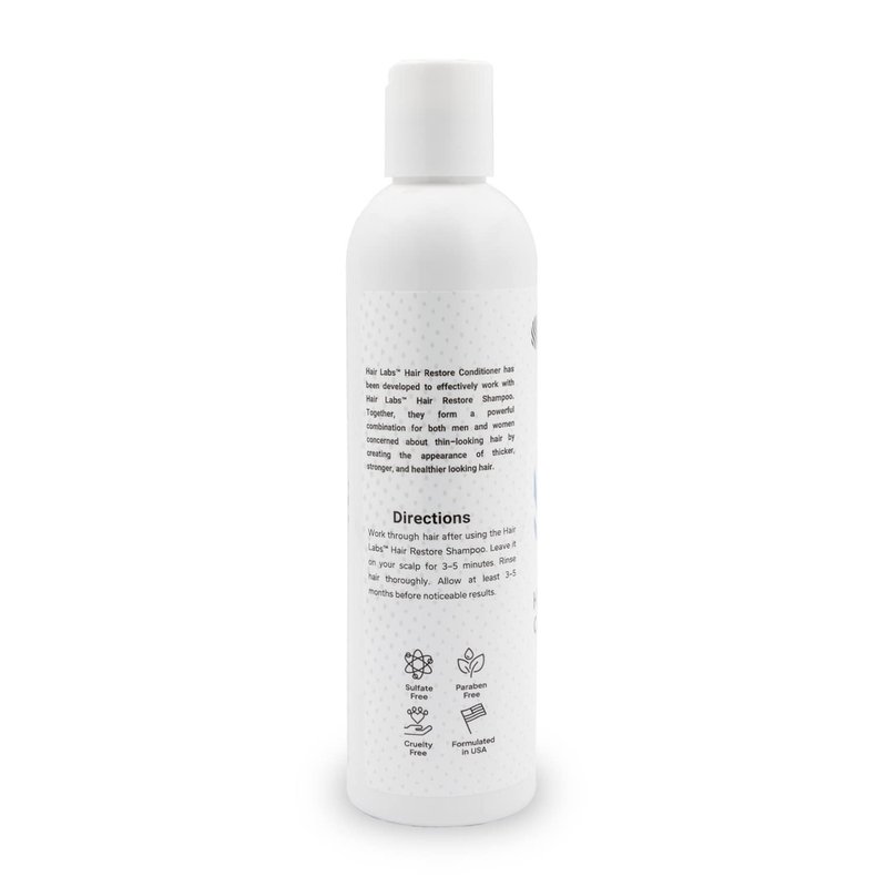 Hair loss can be difficult, and that's why Hair Labs has created a formula to help you recapture the magic of a fuller head of hair. Our Hair Restore Shampoo & Conditioner Set is chock full of nutrients to invigorate your scalp and promote healthier, thicker hair growth. Our hair loss shampoo and conditioner utilize a number of clinically proven ingredients that help block thinning patterns and strengthen hair, including green tea extract, yerba mate, cayenne pepper, argan oil, black cumin seed oil, and tea tree oil for hair, along with aloe vera gel for soothing. Unlike a limited mens thickening shampoo or hair regrowth treatment for women, our powerful solution works on everybody, because we recognize that anyone can struggle with thinning hair. Our amazing hair loss products have no side effects and are free of parabens, sulfates, and other harsh chemicals, and is never tested on animals. It's even safe enough for chemically treated or colored hair. For hair that feels stronger, looks thicker, and is all around healthier, Hair Restoration Labs has your back—and your head.