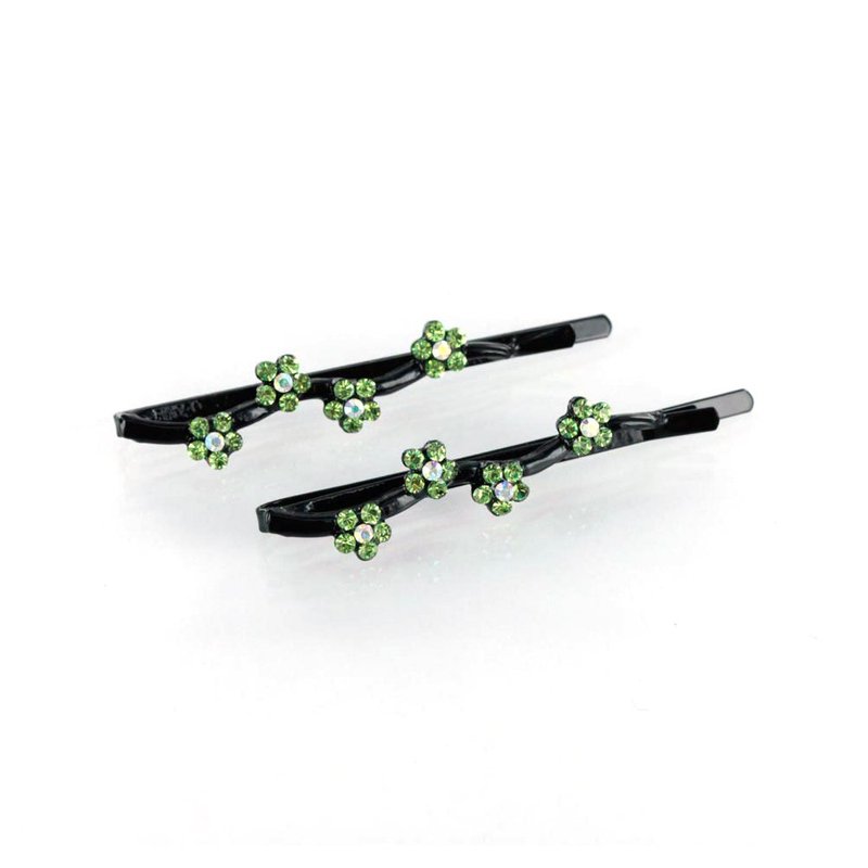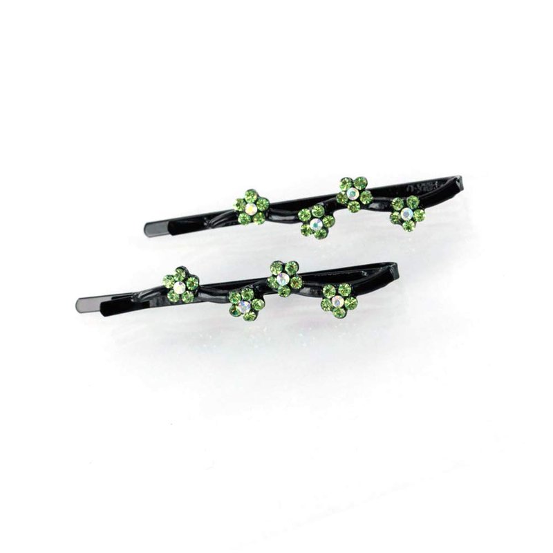 Hair Pins for women Faux Rhinestone Flower Daisy Covered Bobby Pin, Set of Two, Green