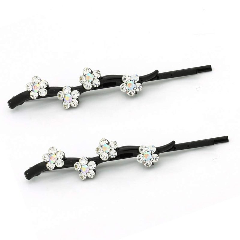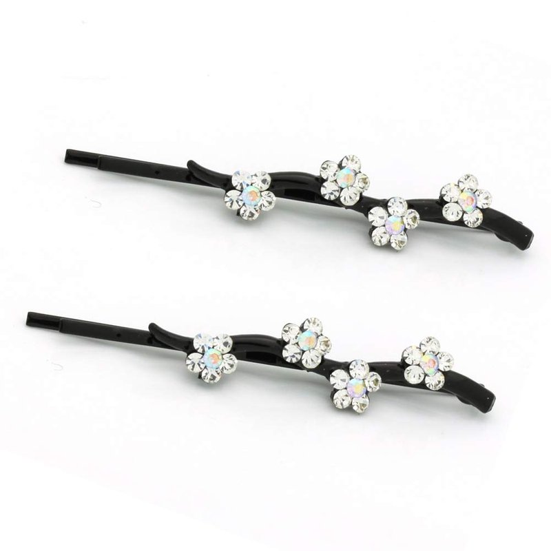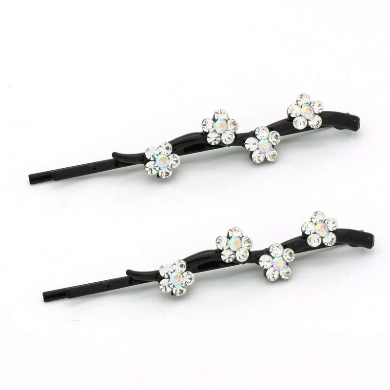Hair Pins for women Faux Rhinestone Flower Daisy Covered Bobby Pin, Set of Two, White