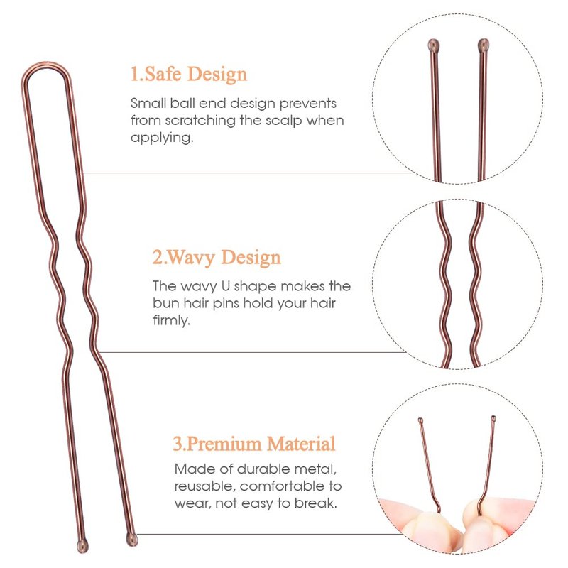 - Safe Design: These hair bun pins possess small ball ends which can prevent from scratching the scalp when applying; designed with wavy U shape makes it hold your hair firmly and easy to shape the hair.