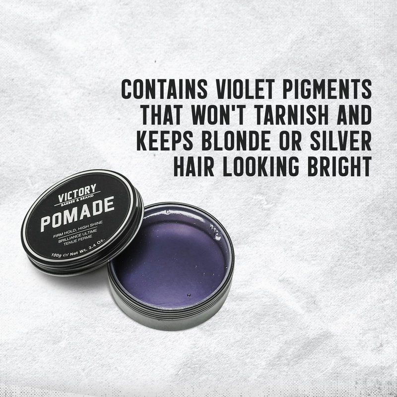 - 👑PURPLE IS A REAL MAN’S COLOR – Most hair pomade for men is brown or orange, leaving silver, grey and blonde hair looking like a cow pie. Victory's Pomade contains a majestic violet pigment that protects your masculine hair from tarnishing.