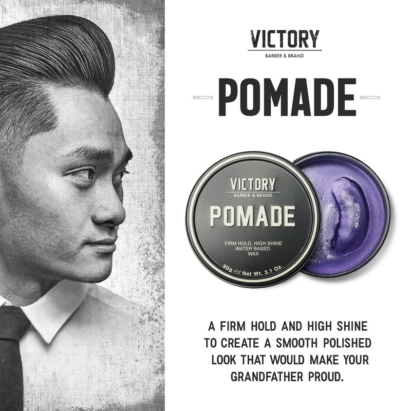 - ✨ PERFECTLY POLISHED – Victory Brand Pomade gives a firm hold and smooth shine that polishes up classic, combed hairstyles better than the rest. Use Victory Pomade to transform even the most ungroomed brute of a man into an absolute gentleman, with a look that would make his grandpa proud.