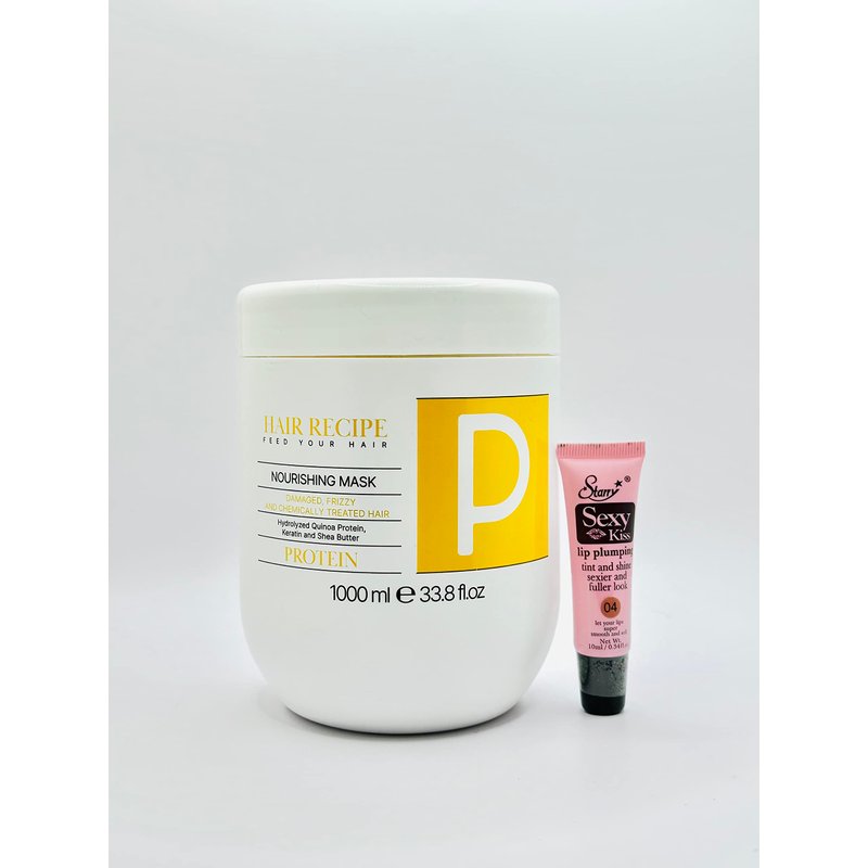 Hair Recipe Feed Your Hair Mask by Maxima 1000 ml /33.8 fl oz - Free Starry Lip Plumping Gloss 10ml (Protein- Nourishing Mask)