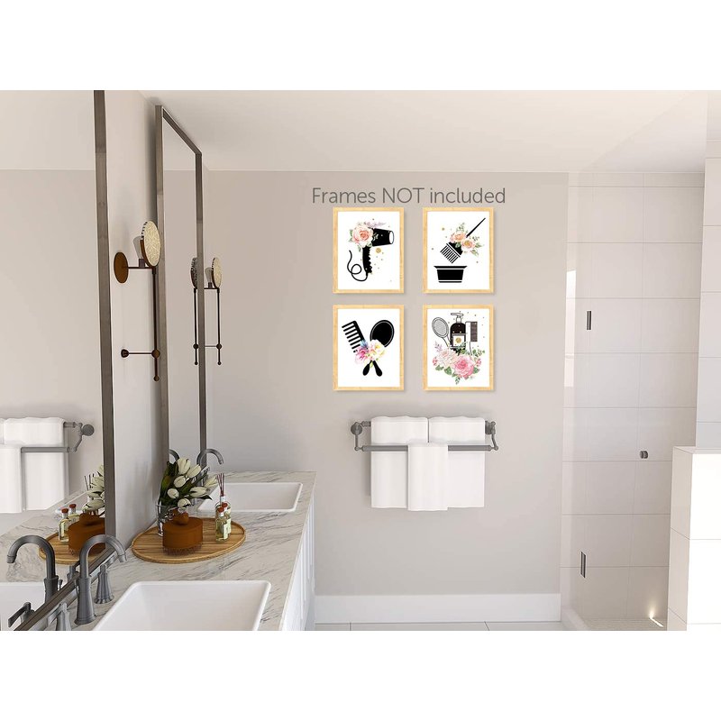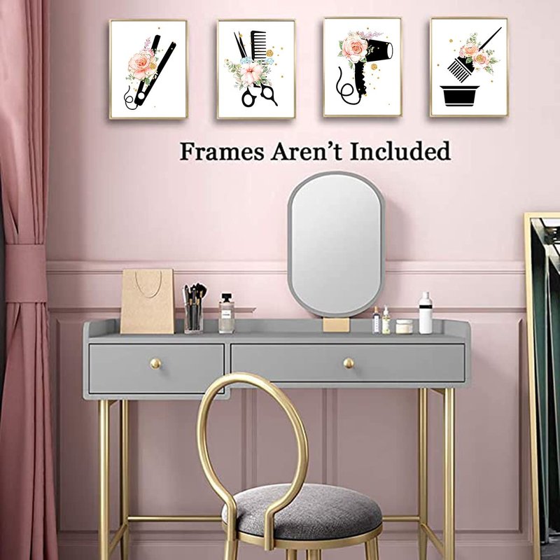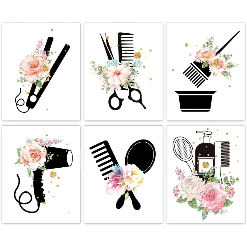 - Stylish Wall Art: Elevate the decor of your hair salon, bathroom, or bedroom with this set of 6 modern canvas posters featuring chic hairstyling tools and vibrant floral accents