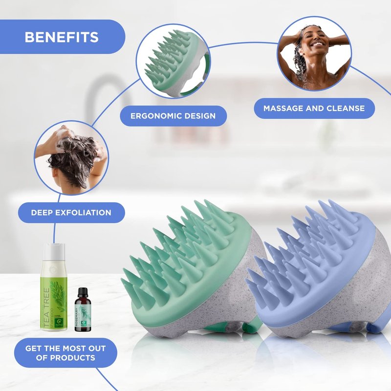 - Massage and Cleanse - Say hello to our all in one Scalp massager Shampoo brush and Dandruff remover with high grade silicone bristles for gentle but effective exfoliation that maximizes shampooing