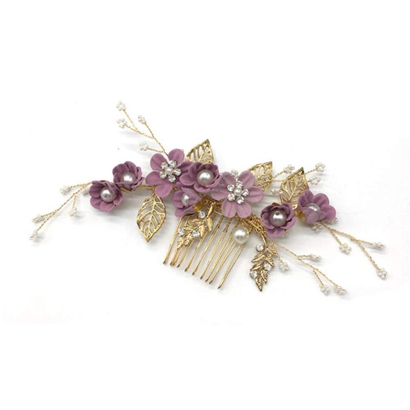 Hair Side Combs Bride Wedding Hair Comb Flowers Pearl Bridesmaids Hair Piece Accessories Vintage Bridal Hair Clips for Women and Girls (Purple)