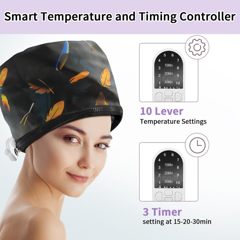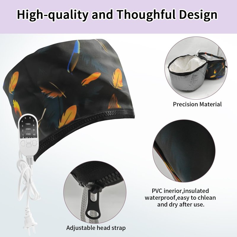 Hair Steamer Cap, Portable Hair Care Hat with 10 Mode Temperature Control, 110V Electric Heating Cap for Hair SPA Beauty Steamer Nourishing Hat Hair Thermal Treatment Cap (Black Feather)