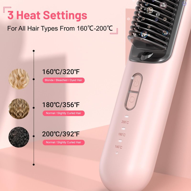 - Compact and Portable Design - With its sleek and lightweight design, this cordless hair straightener brush is perfect for travel and easy to carry. Stay effortlessly stylish and ready for any occasion, from busy days to glamorous nights out.