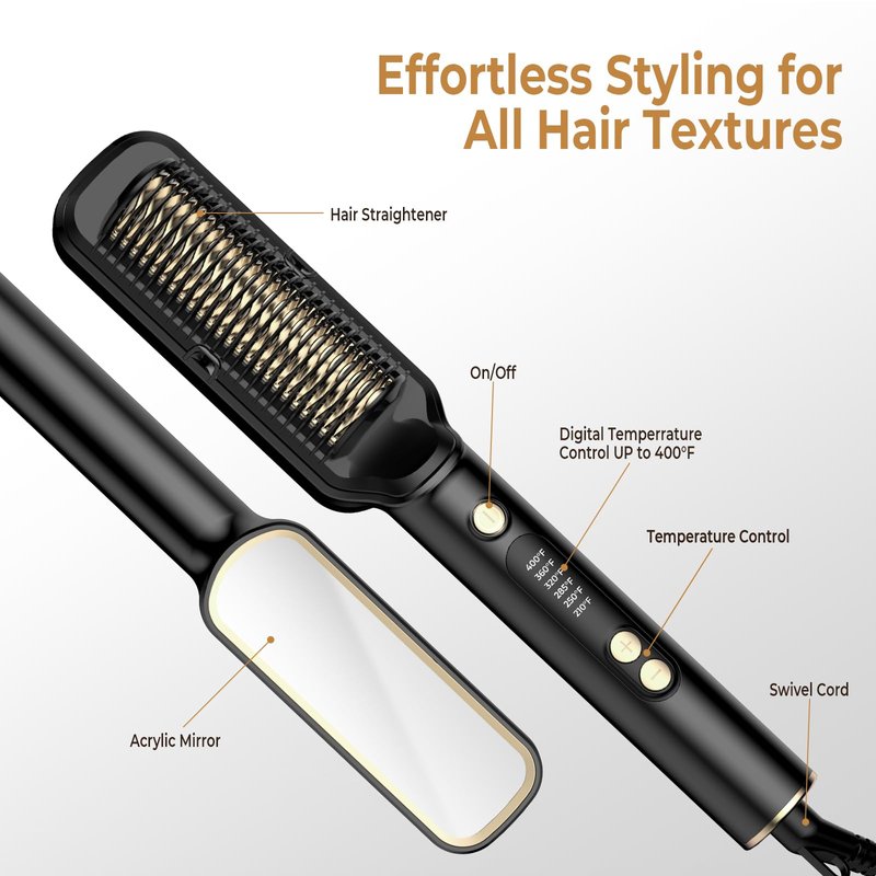 - Simplified Styling Experience: Designed for ease of use, our hair straightener brush saves you time while styling your hair. It's perfect for personal use and for helping your family members achieve their desired looks. Enjoy salon-quality results right from the comfort of your home.The back of the comb is equipped with a mirror for easy styling.